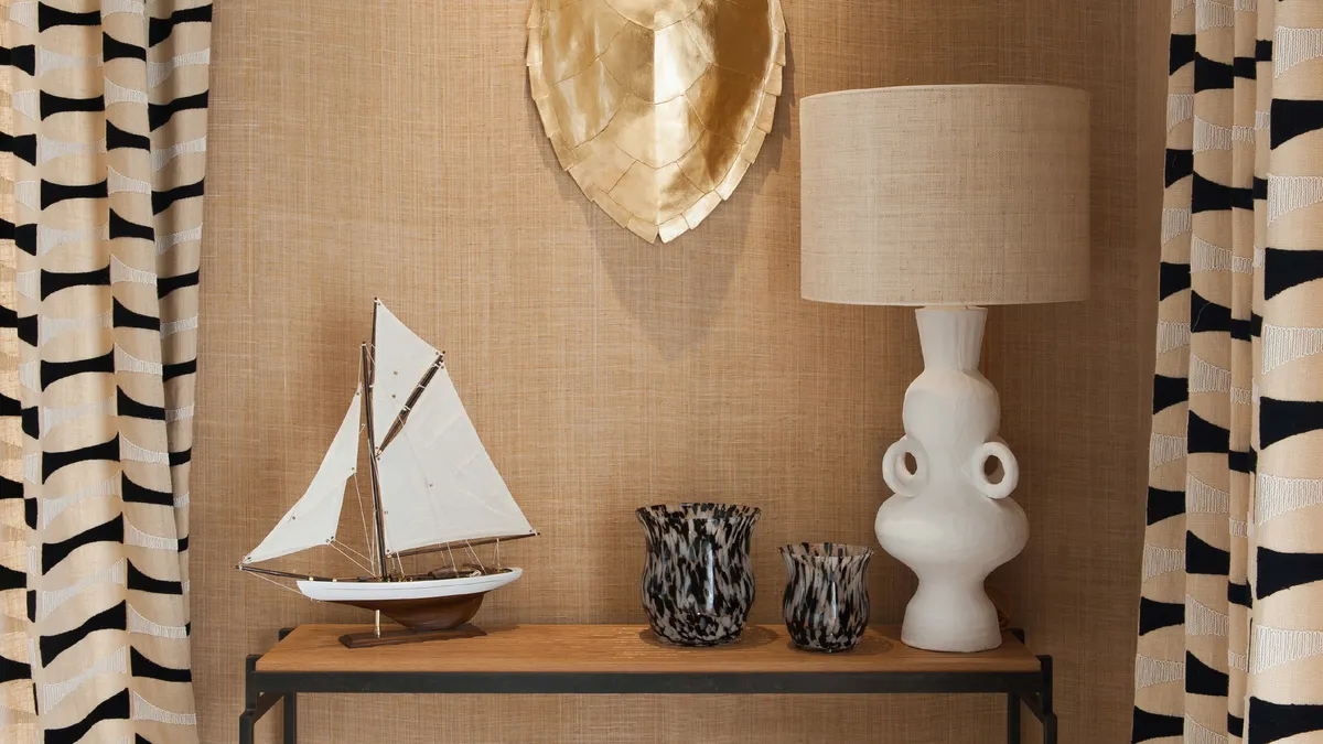 Natural fiber wall covering with handcrafted raffia weaving, Villa Carrière, St Jean Cap Ferrat